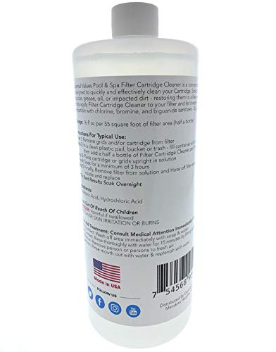 Essential Values Pool Spa Filter Cartridge Cleaner 32oz 1 Quart 2 Uses Cleaning Solution For Pool Filters Spa Filters